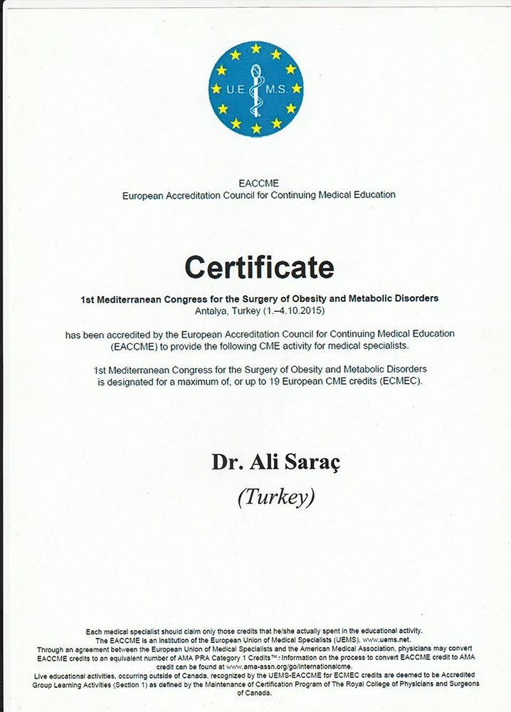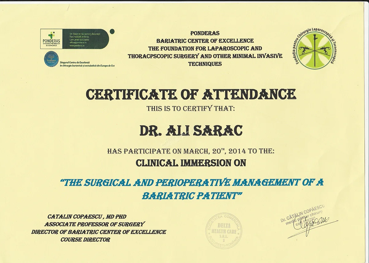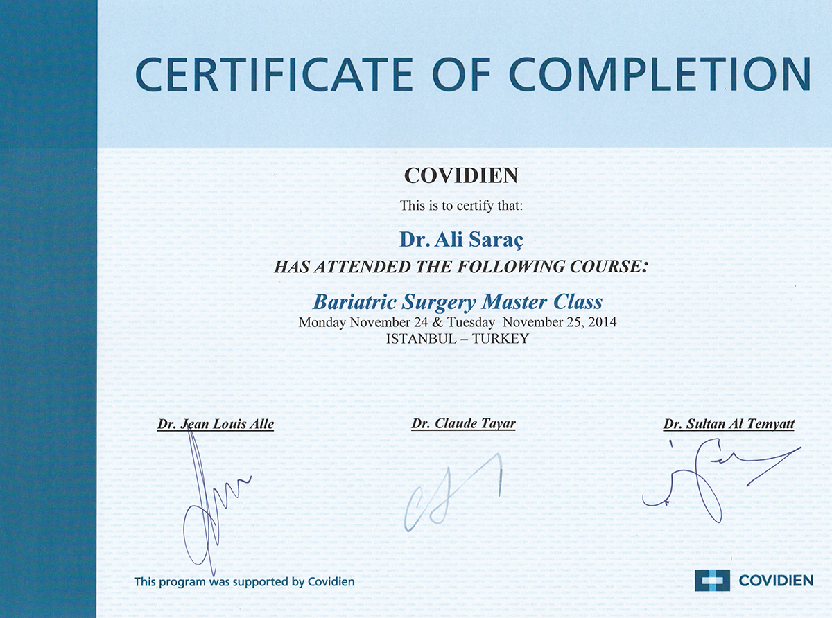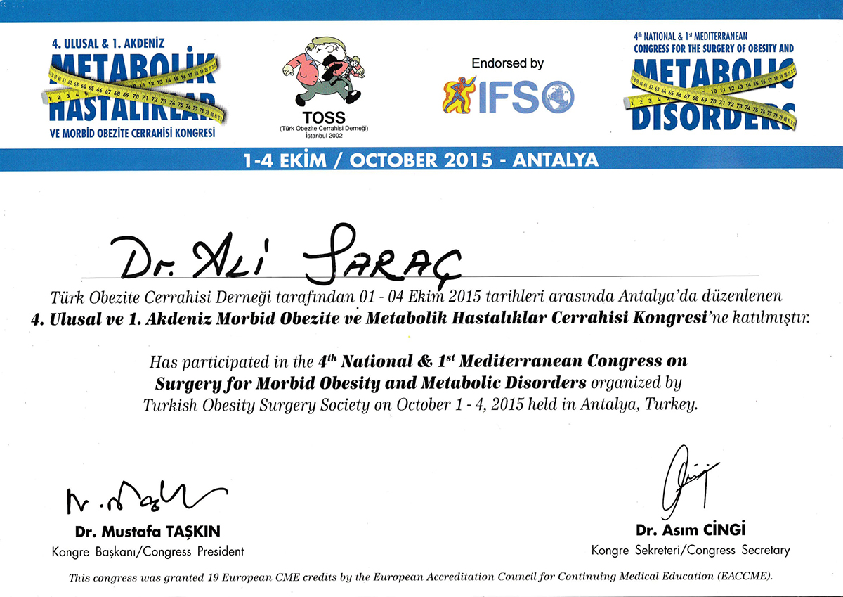 - Malabsorbtif ve kombine cerrahi prosedürler kursu (2015)
