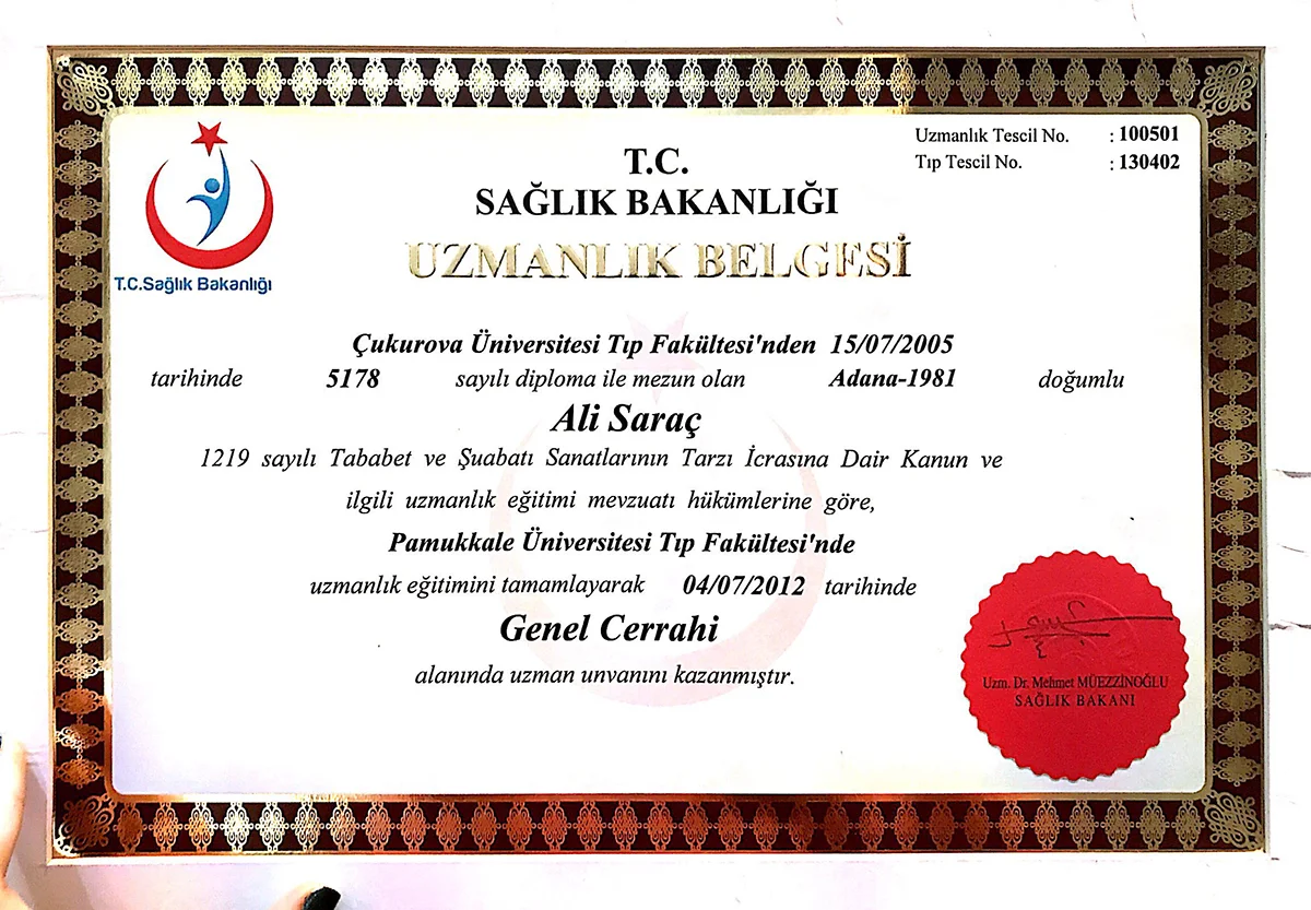 - 2007-2012 Pamukkale Üniversitesi Tıp Fakültesi Genel Cerrahi Anabilim Dalı